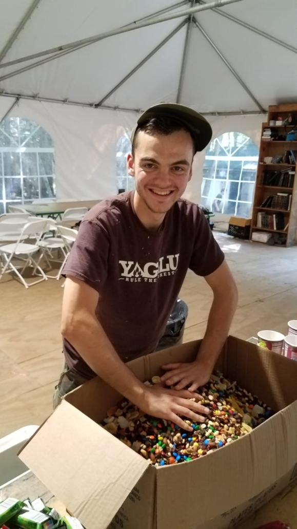 Yagilu’s motto. Shouted after every accomplishment, it represents our goal to actualize the potential Hashem granted us as mini-creators. and stewards of the world -Mil’u Es HaAretz V’Kivshuha, U’rdu…! We crossed the lake in a raft we built ourselves – 1 … 2… 3… Rule The Forest!”